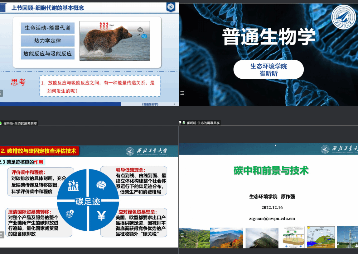 5位青年教师逐一进行了线上教学展示,与会专家深入细致的从课程内容导入、课件制作与设计、教学内容熟练度、如何启发和引导学生思考、如何与学生的互动交流等方面与每位青年教师交流指导,并提出改进建议,青年教师们均表示受益匪浅。