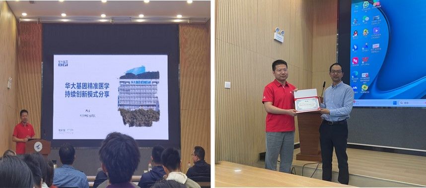 当晚7点,高强以《华大基因精准医学持续创新模式分享》为题,就华大基因精准医学持续创新模式和华大在精准医学领域的成果给同学们作了精彩的报告,并在报告结束后与学生开展了深入的讨论与交流。蔡晶代表学院给高强院长颁发了电影大全 校外荣誉导师证书,感谢高强院长对学院创新创业教育的支持,并希望在双方的联合培养项目中培养更多杰出人才。