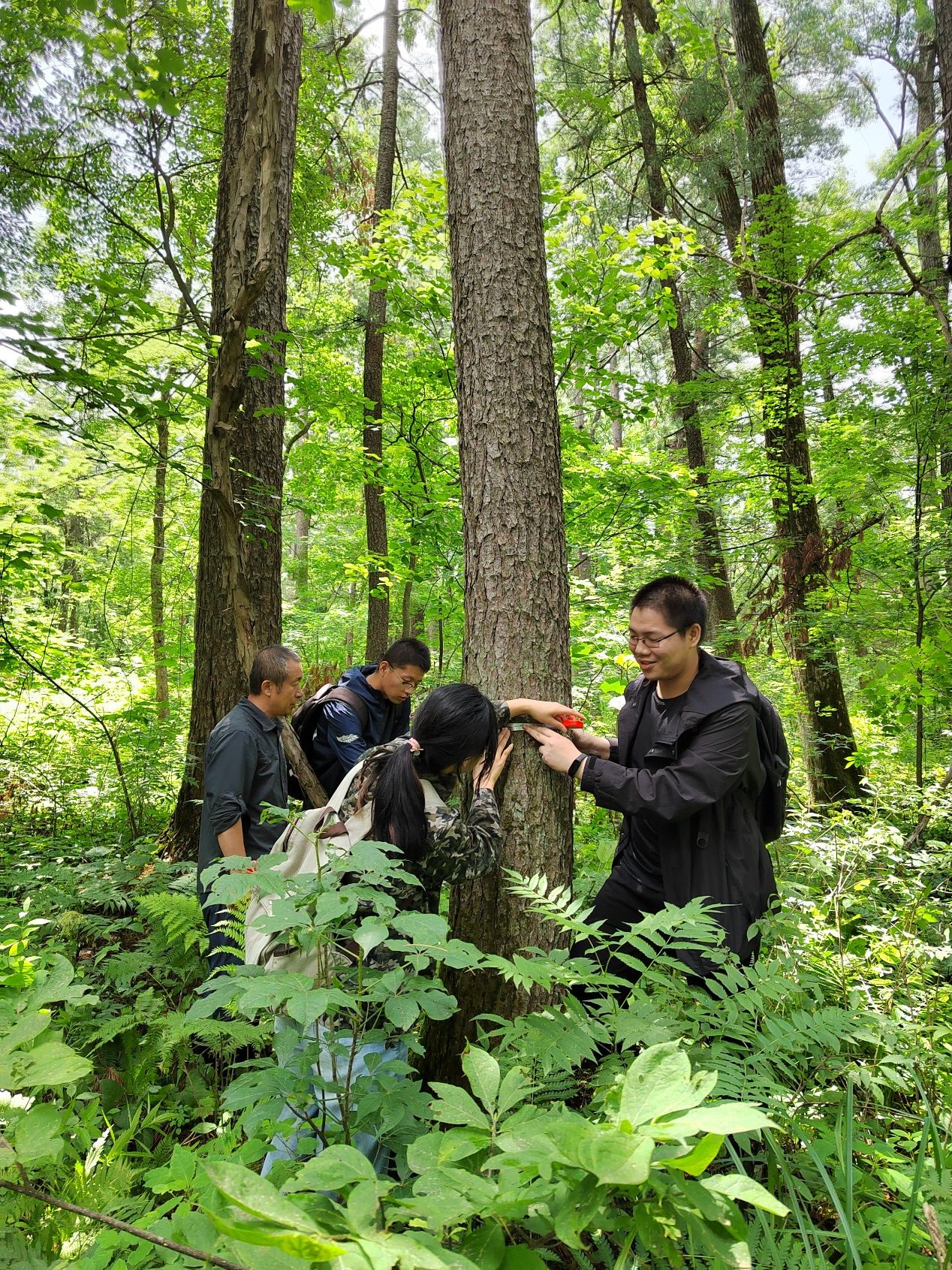 11上午,与华东师大的实践团队一起,学习植物样方设置方法,通过确定边界、拉线、定桩等实践操作,调查样方内胸径大于5㎝木本植物的物种、胸径、树高、坐标状态等信息了解如何开展森林资源监测与评同时学习了草本样方的建设流程。当天下午,师生共同参观了被中国林学会命名为第五批全国林草科普基地的露水河林业局红松种子园,通过实地踏查参观,了解到该种子园保育了遗传品质多样的红松资源,通过利用结实丰产型优树的接穗进行繁育并能大量生产商品种子的林分,比实生的红松林分提前20年进入结实期,有效提高了红松的经济效益,是调整林业产业结构、增加林业收入、促进农民致富的有效途径。