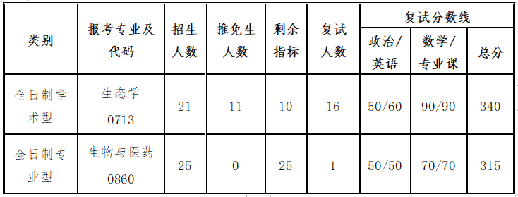 生物与医药(086000)有缺额,调剂工作另行通知。