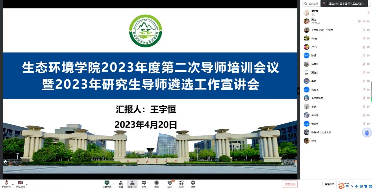 2023420日,电影大全 召开2023年度第二次导师培训会议暨2023年研究生导师遴选工作宣讲会。本次会议采用线上的方式进行,会议由副院长王宇恒主持,全体研究生导师参加了本次会议。