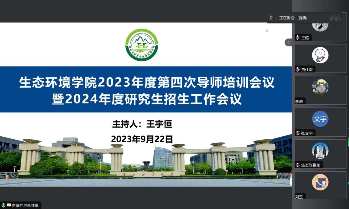 召开2023年度第四次导师培训会议暨2024年度研究生招生工作会议。本次会议采用线上线下相结合的方式进行,全体研究生导师参加了本次会议,会议由副院长王宇恒主持。