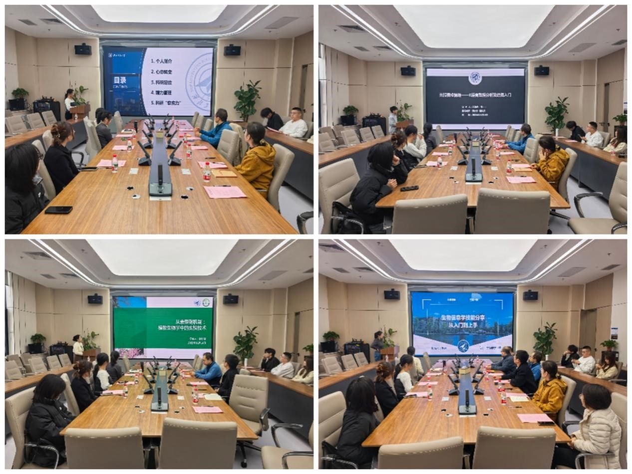 在经验分享环节,四位优秀研究生结合自身实践,从不同角度展示了个人科研及生活成长路径。李悦以《从01的科研进阶:心态、定位、效能与表达》为题,强调心态调整与学术表达的重要性;冯如亮聚焦R语言数据分析与绘图入门,为初学者破解技术畏难情绪;徐佳慧系统梳理植物生物学实验技术,并分享实验经历以及高水平论文发表经验;赵蕾则从生物信息学入门实践出发,探讨技能提升与前沿研究的结合。朋辈代表的务实分享,为在场研究生提供了可借鉴的成长范本。