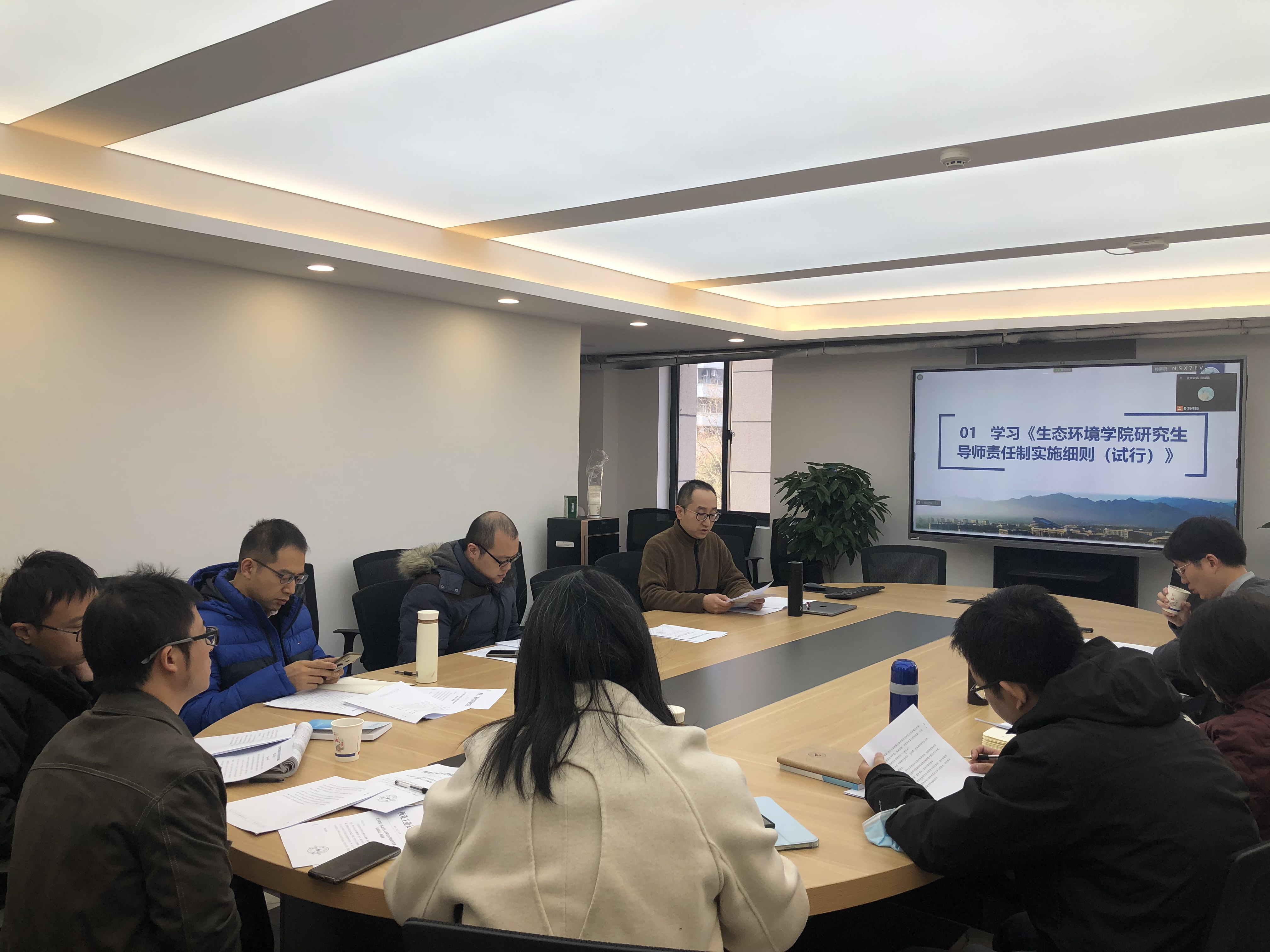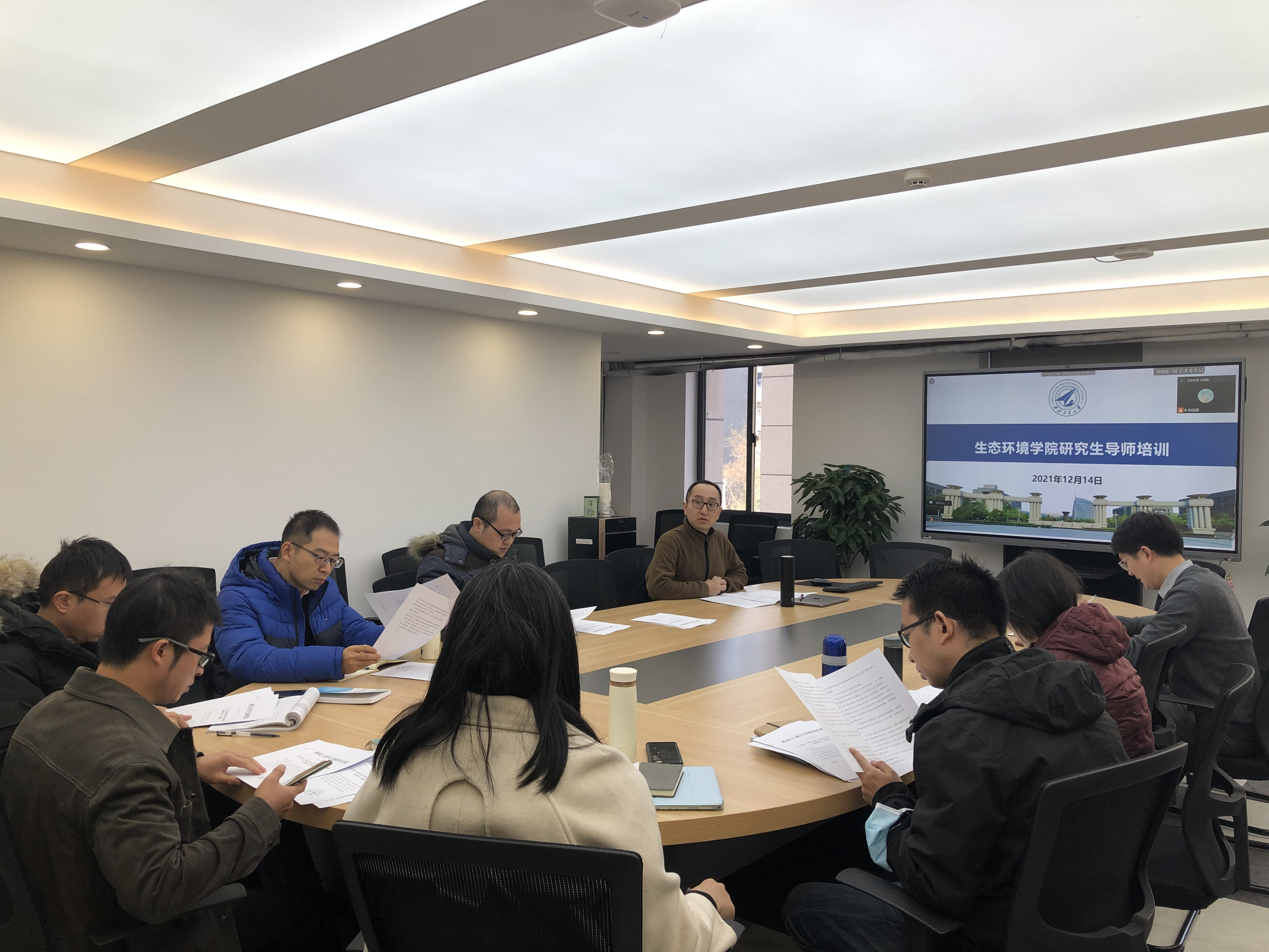 于2021年11月14日下午在综合会议室召开导师培训会议。会议由副院长王宇恒主持。学院研究生导师通过线下和线上方式同时参加。