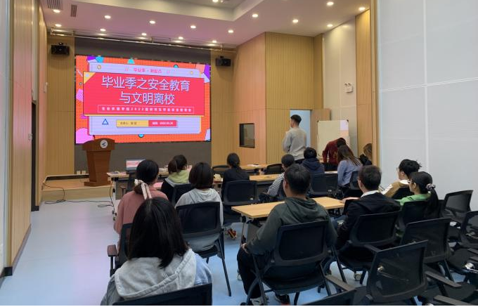 侯猛从交通安全、饮食卫生安全、实验室安全、安全文明离校四个方面展开讲解,结合相关案例形象的向同学们讲述了学生离校时校园周边存在的一些安全隐患和校园安全常识,使学生们增强安全防范意识,提高安全防范能力。