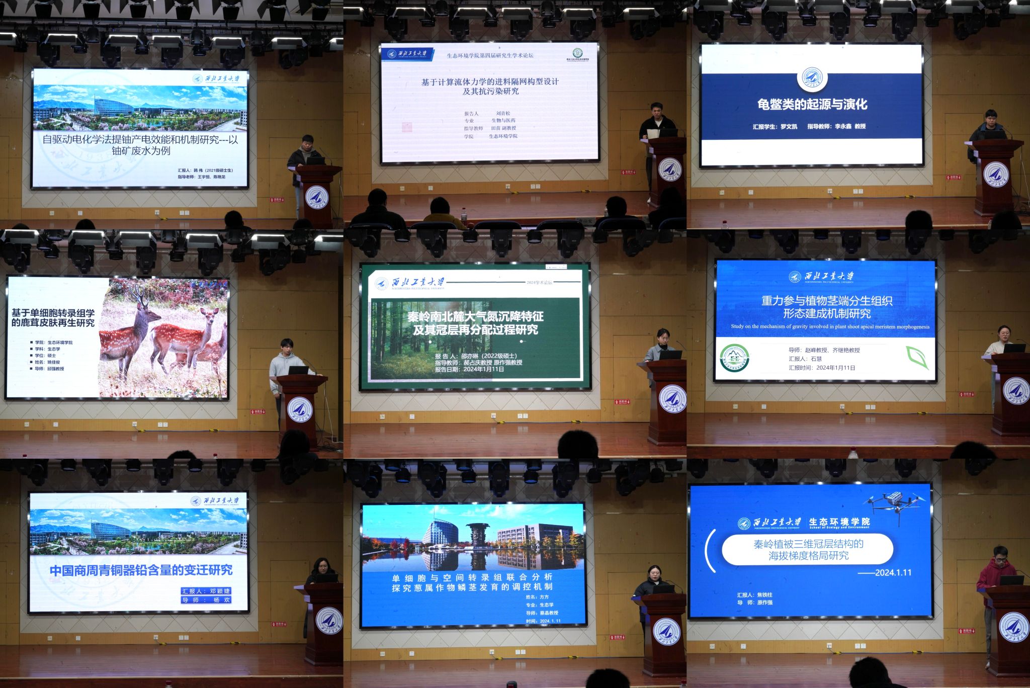 本次研究生学术论坛为学院硕士生专场,共27硕士研究生作报告,研究领域涉及动物生态学、植物生态学、生态系统生态学、修复生态学、青铜器铸造工艺研究等各个方面。报告人主要围绕研究背景、研究内容、总结分析结论和展望等方面展开。随后,各位评委老师参赛者各自的研究课题进行了深入的探讨和交流。