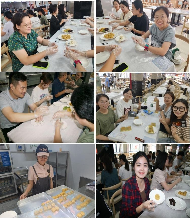 活动现场,食堂巧设月饼工坊,模具多样、馅料丰富、琳琅满目。在师傅的精心指导下,众人投身月饼DIY,亲手制作美味月饼,不仅营造了浓厚的节日氛围,更让每位参与者共品中秋韵味,感受家的温馨。