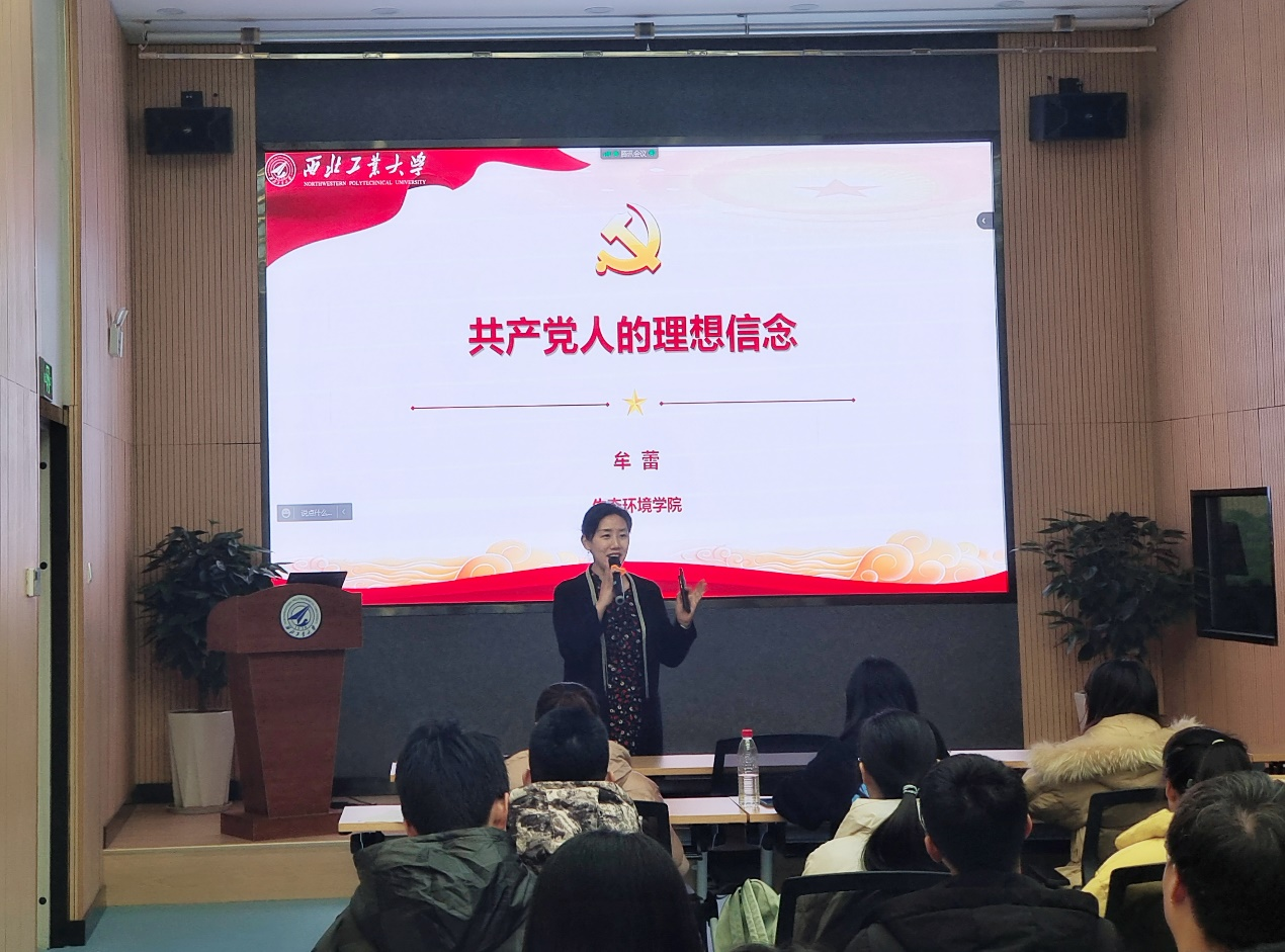 126日晚上,电影大全 党总支书记牟蕾在学院报告厅为青年师生讲授《共产党人的理想信念》专题党课。