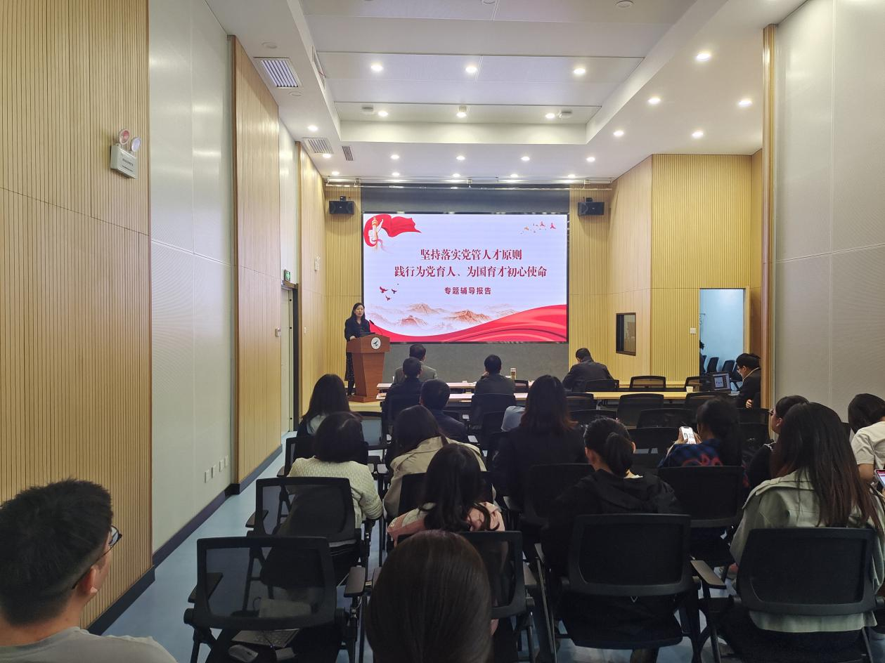为进一步深入落实“党管人才”原则,夯实立德树人根基,4月29日,电影大全 举办落实党管人才原则专题辅导报告。报告由党总支书记、副院长牟蕾主持,学院党总支理论中心组成员、教职工党支部党员、本科生和研究生任课教师、办公室管理人员、学生支部书记参加本次活动。