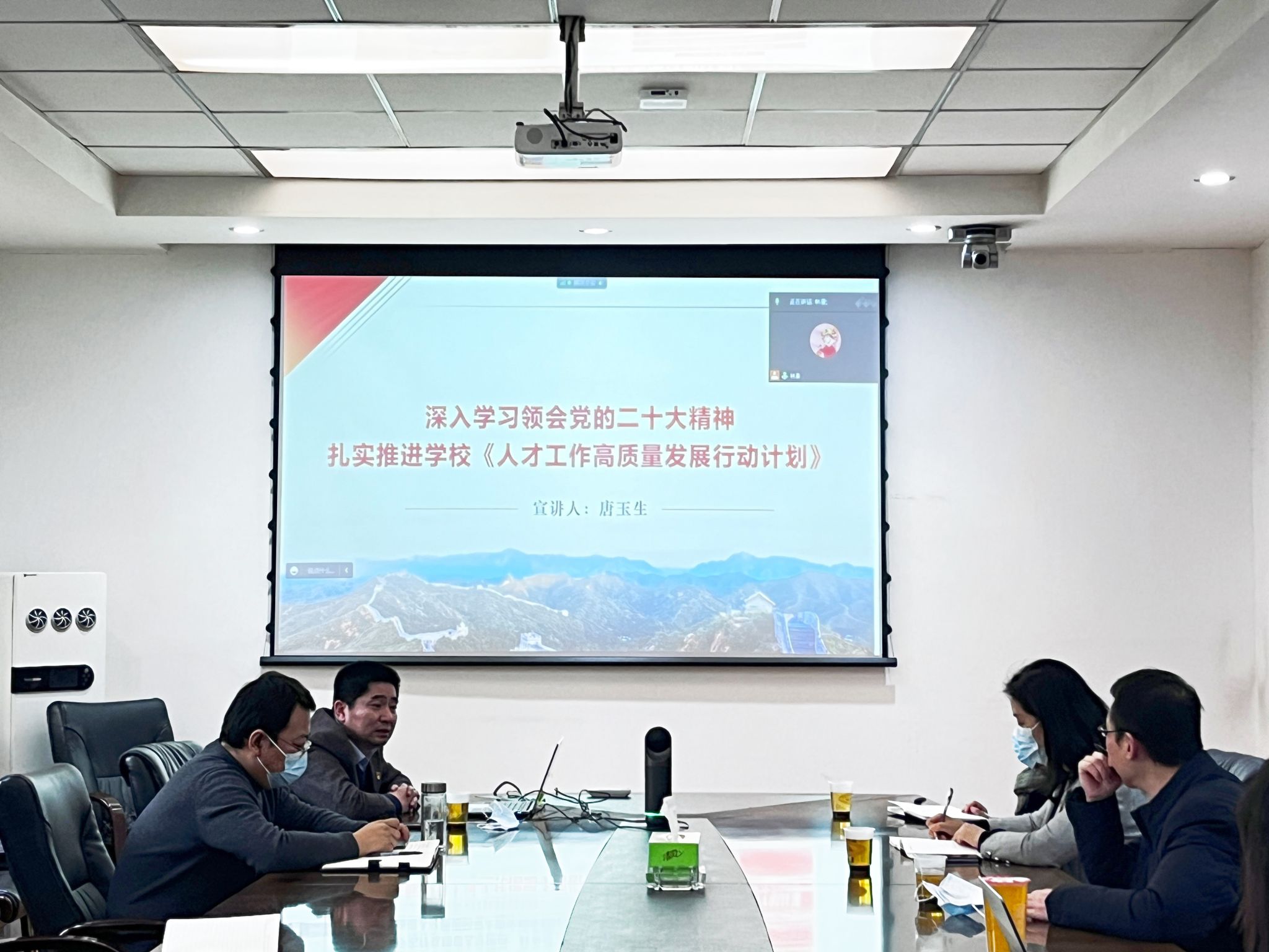 12月1日下午,电影大全 邀请学校党的二十大精神理论宣讲团成员、人事处处长唐玉生作《深入学习领会党的二十大精神,扎实推进学校<人才工作高质量发展行动计划>》专题辅导报告,学院领导班子成员、中心组成员、各师生党支部书记和支委、以及全体教职工,通过线下与线上相结合的方式参加了学习。会议由党总支书记、副院长牟蕾主持。