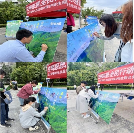 为深入学习贯彻习近平新时代中国特色社会主义思想和党的二十大精神,引领广大师生自觉践行习近平生态文明思想,牢固树立绿水青山就是金山银山的理念,提高秦岭生态环境保护意识,以实际行动共建美丽中国。6月5日,电影大全 秦岭生态监测与保护师生融合党支部联合低年级本科生党支部在数字化大楼广场开展了“自觉践行习近平生态文明思想,全民行动共建美丽中国”六五环境日主题宣传活动。