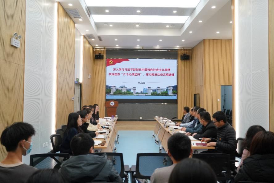 最后,与会人员就此次理论学习会的主要内容进行了交流发言。支部党员陈甜甜、赵峰、王翔翔、贺娟、仙保山依次分享了学习感悟,他们将自身研究方向与生态文明理念相结合,提出生态文明建设是多学科互相促进和发展的过程,科研工作者应该聚焦实际问题,以解决问题为导向,联合多学科开展相关研究。同时,大家一致认为,要将人生理想融入国家事业中,深入践行“把论文写在祖国大地上”,努力为建设美丽中国贡献自身力量。