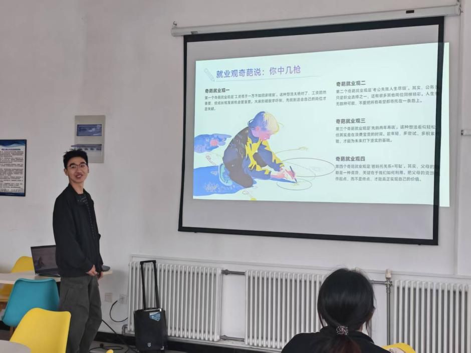 在海天苑1号楼C座思创空间举办了以“就业不躺平,三观正到赢”为主题的团日活动。活动由25级本科班团支书樊博毅主持,全体25级本科生团员参与活动。