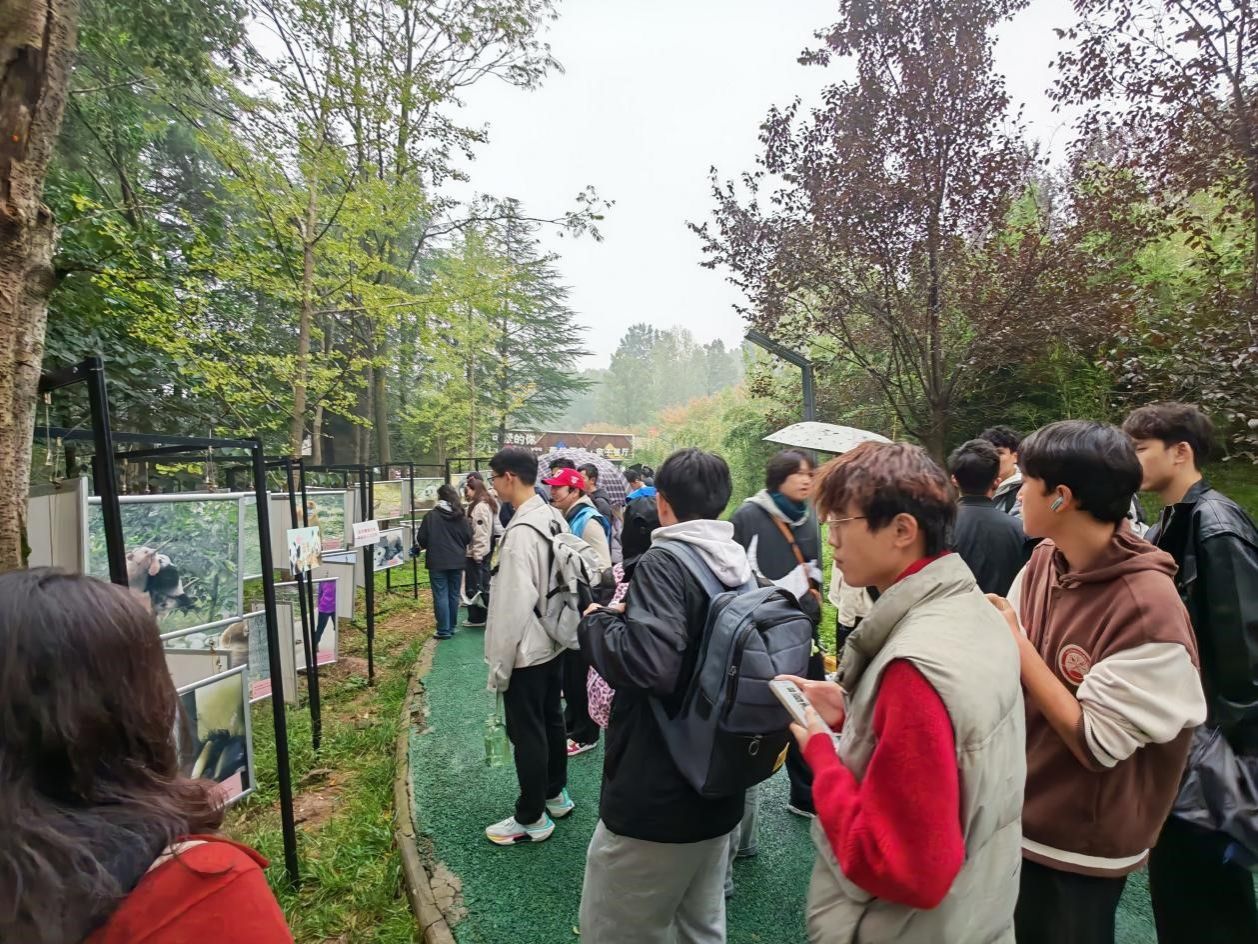 同学们依次走进金丝猴、黑熊、大熊猫、羚牛与朱鹮等代表性动物展区,近距离观察它们的生活状态。参观过程中,讲解员围绕每种动物的生活习性、濒危状况、保护措施及成效进行了系统讲解。从熊猫人工繁育技术突破到朱鹮就地保护成效,一个个生动的案例展现了我国在守护濒危物种方面的坚定决心与扎实行动。同学们认真聆听、积极提问,对“秦岭四宝”的珍贵价值以及我国在生物多样性保护领域取得的成就有了更全面的认识。