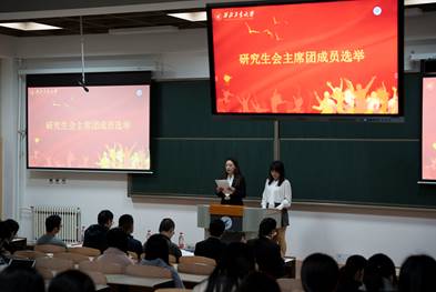 第一届研究生会主席团选举办法》和学院研究生会第一届主席团候选人名单。根据现场投票结果,李甜甜、周廷赣、刘润清当选为学院第一届研会主席团成员。