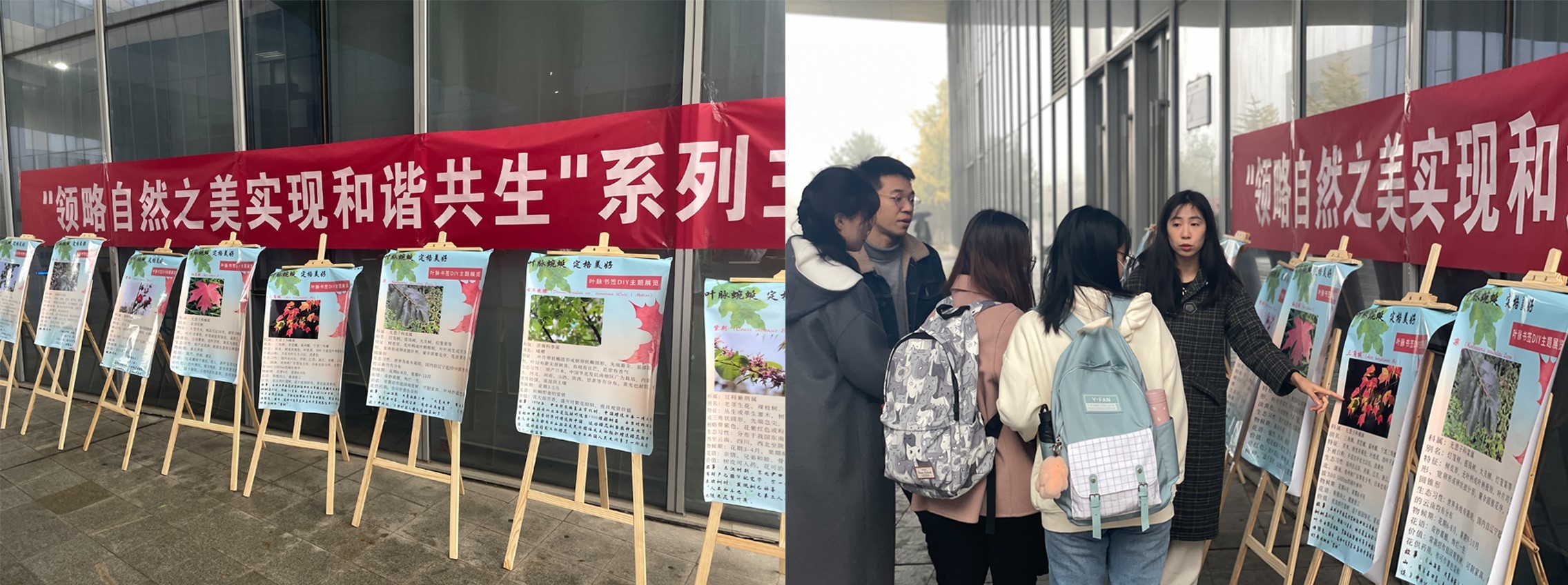 10月26-27日,“叶脉书签”DIY主题展览活动在启真楼通道进行,工作人员对校园树种进行科普介绍,同时将同学们制作的叶脉书签进行展示,共展出作品57份,吸引了许多同学驻足观看,了解并参与活动。