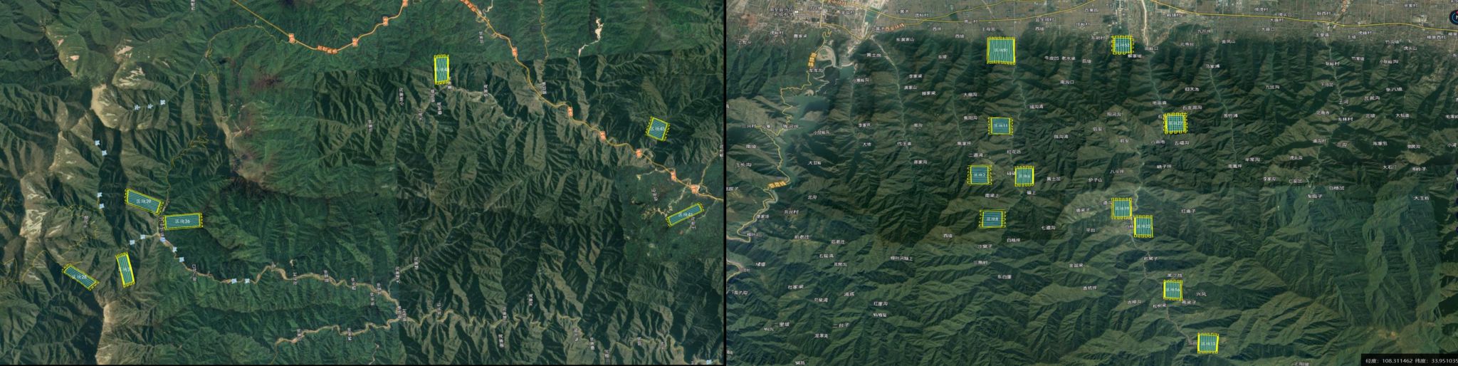 图为无人机在秦岭南坡及北坡18个最高树潜在区域的飞行样点