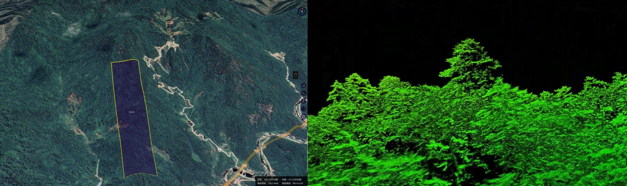 图为最终锁定的秦岭最高树所在区域及其点云模型